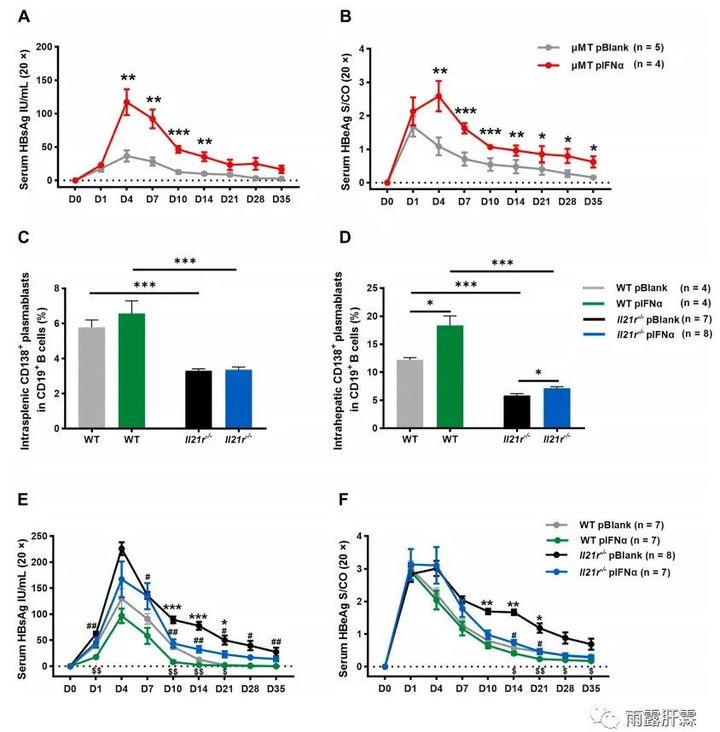 B細胞和IL-21在IFN-α介導的抗HBV應答中的作用