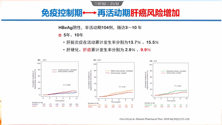 免疫控制期患者進展為再活動期肝癌風險顯著增加。