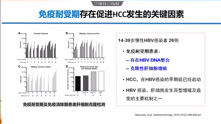 免疫耐受期患者存在HCC發生的關鍵因素:存在HBV DNA整合及克隆性肝細胞增殖。