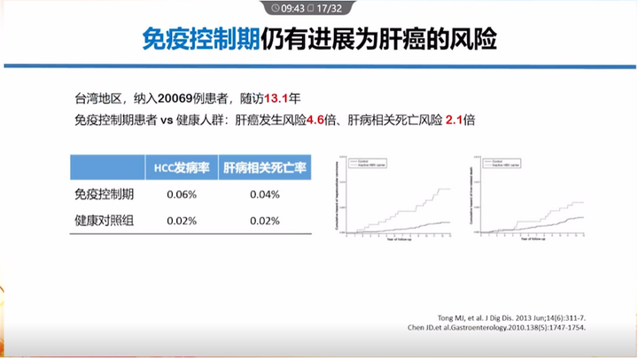 臺灣研究:免疫控制期患者的肝癌發生風險是健康人群的4.6倍,肝病相關死亡風險為2.1倍。