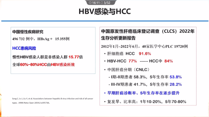 2022年中國原發性肝癌臨床登記調查(CLCS):肝細胞癌(HCC)占肝癌的91.6%,其中84%是由HBV感染引起的。近年來,早期肝癌診斷率和5年生存率明顯改善。
