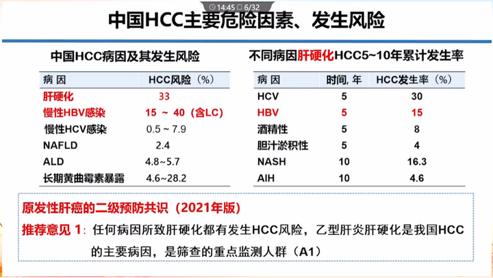 乙型肝炎肝硬化是我國HCC的主要病因,是篩查的重點監測人群。